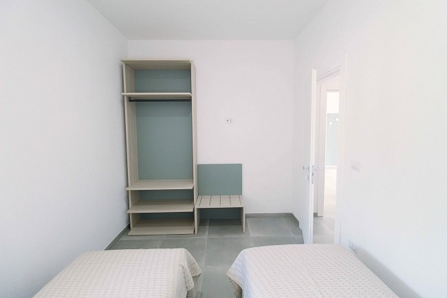 appartamento con aria condionata e tv, ampia area giorno con angolo cottura ben attrezzato, un divano letto doppio, camera da letto matrimoniale, cameretta composta da due letti singoli, bagno con box doccia, veranda antistante l’entrata dell’appartamento e di un balconcino/patio retrostante attrezzato. Arredati in modo semplice e funzionale.