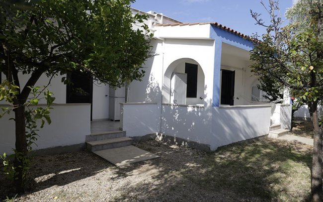 soggiorno con angolo cottura, eventuale divano letto, camera matrimoniale, servizi, veranda coperta.